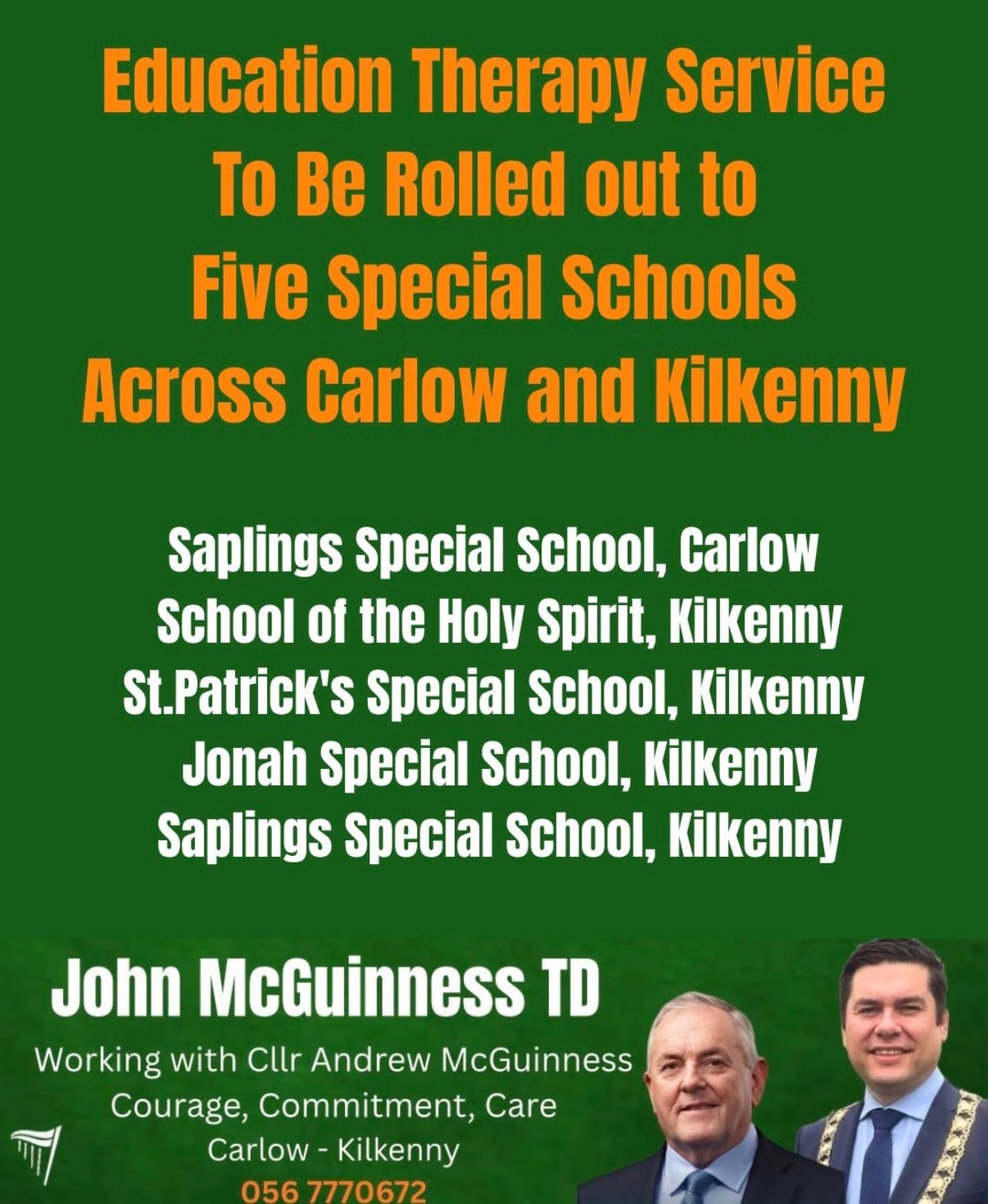 John's mobile phone number is public property and he runs clinics throughout the constituency on a regular, organised basis, including one in his office in Kilkenny every Saturday. That office is open six days a week, and Andrew, Sinéad & ED are there to help you with advice and assistance.